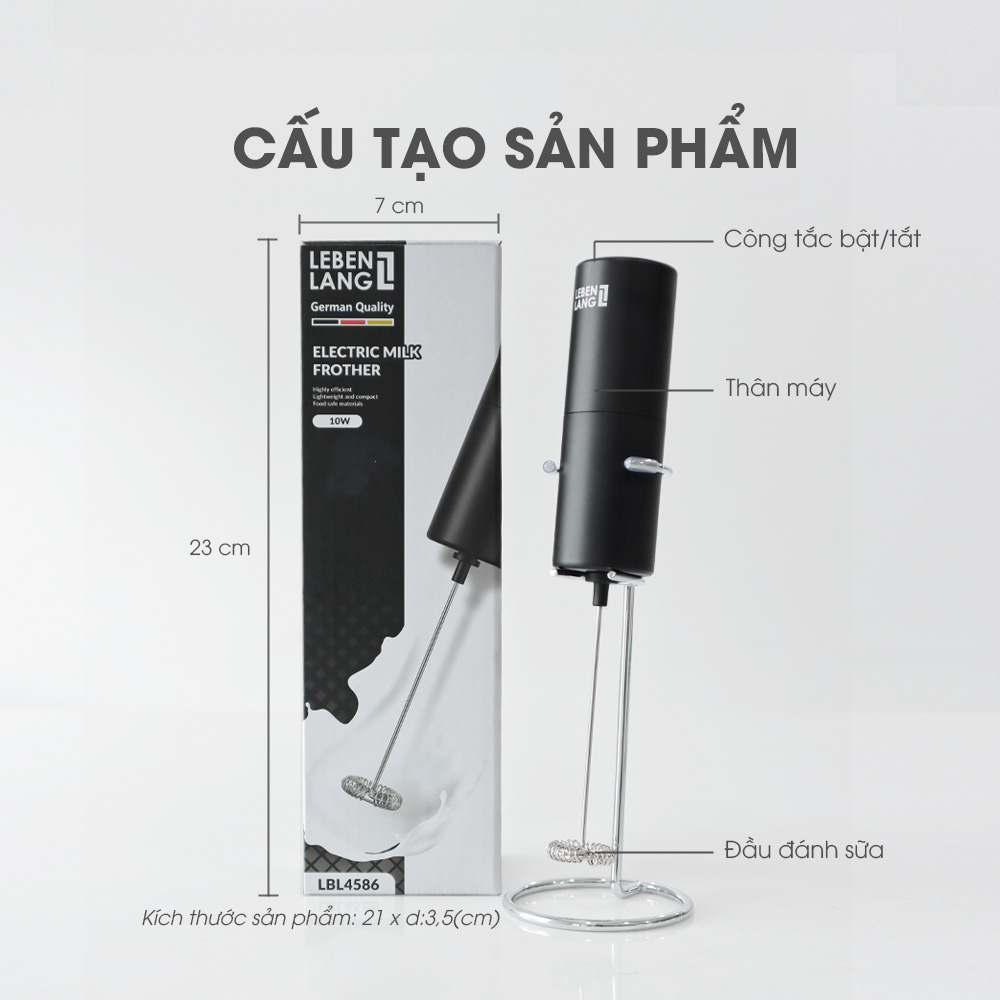 Máy đánh bọt cafe cầm tay Lebenlang LBL4583, pin sạc 10W, bảo hành 2 năm chuẩn Đức - Zalo 0986588655