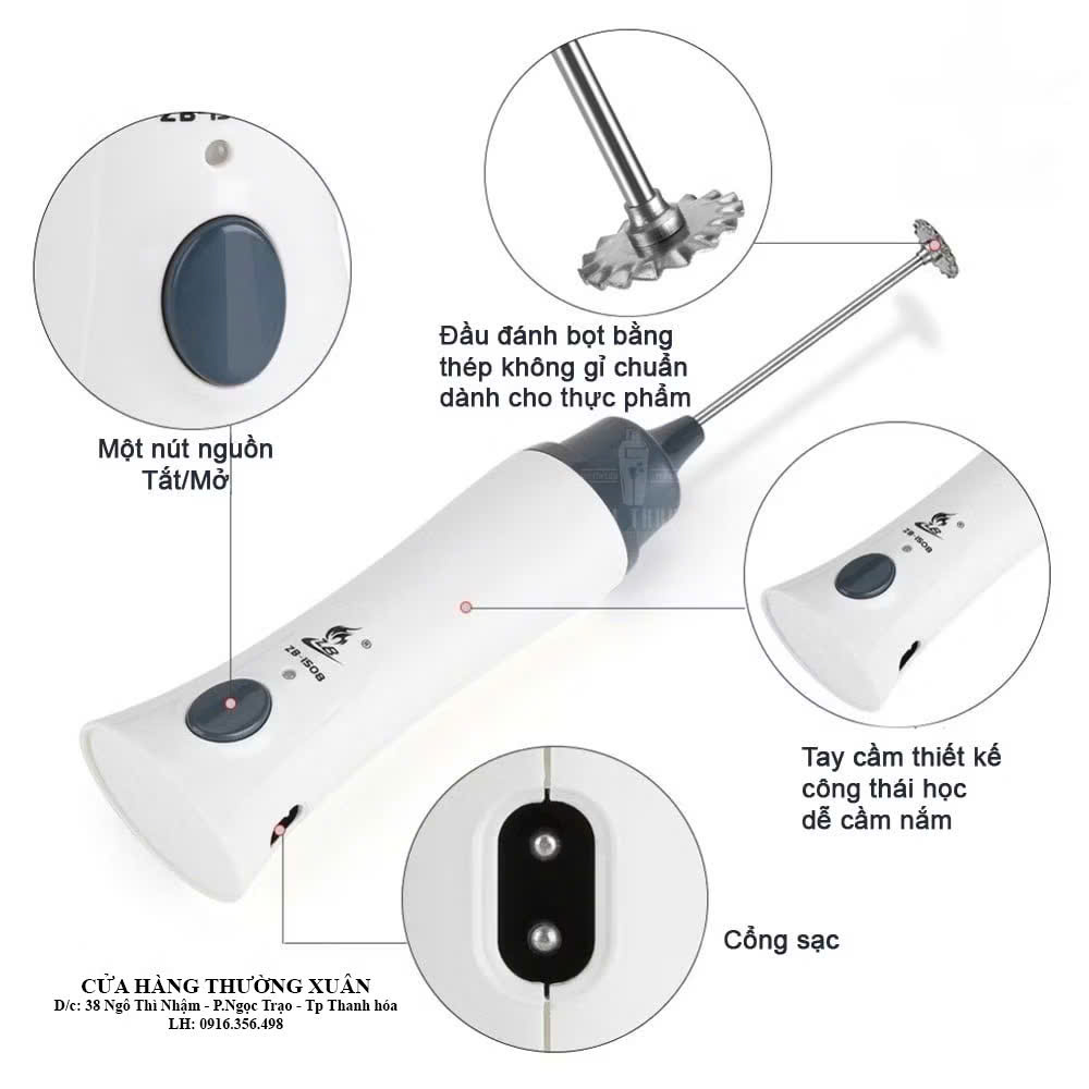 Mua tại TiktokMáy Đánh Sữa, Cà Phê, Trứng, Socola, Matcha Tạo Bọt Sử Dụng Dây Sạc Điện Điểm Nổi Bật: