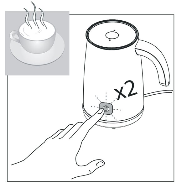 2. Làm nóng sữa (không tạo bọt): Nhấn nút 2 lần