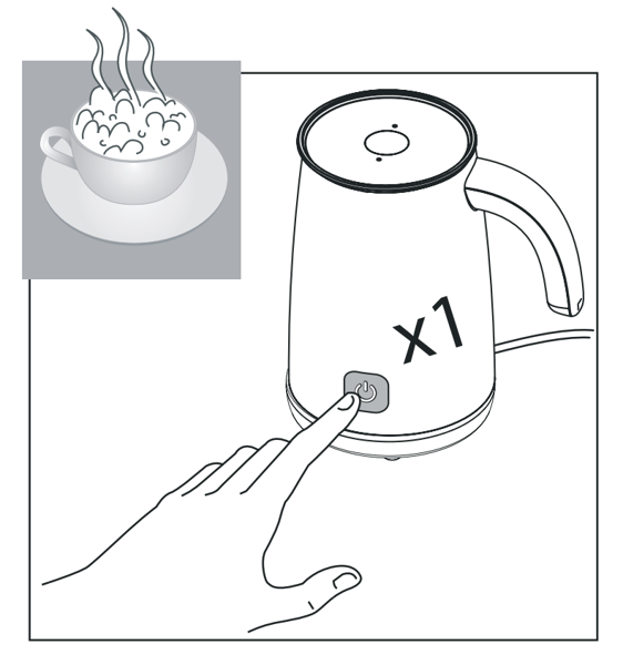 1. Tạo bọt sữa nóng: Nhấn nút 1 lần
