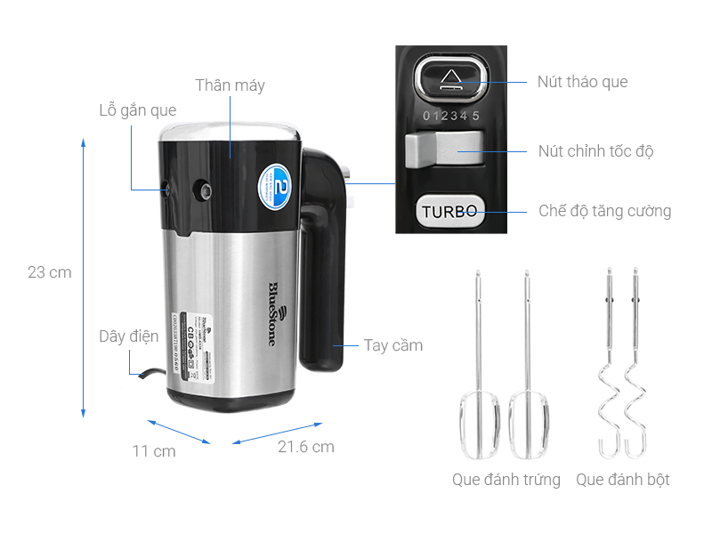 Máy đánh trứng Bluestone HMB-6338 - Công suất 400W - 5 mức tốc độ phù hợp với nhiều loại thực phẩm - Chất liệu thân máy bằng thép không gỉ, không trầy xước, bền đẹp