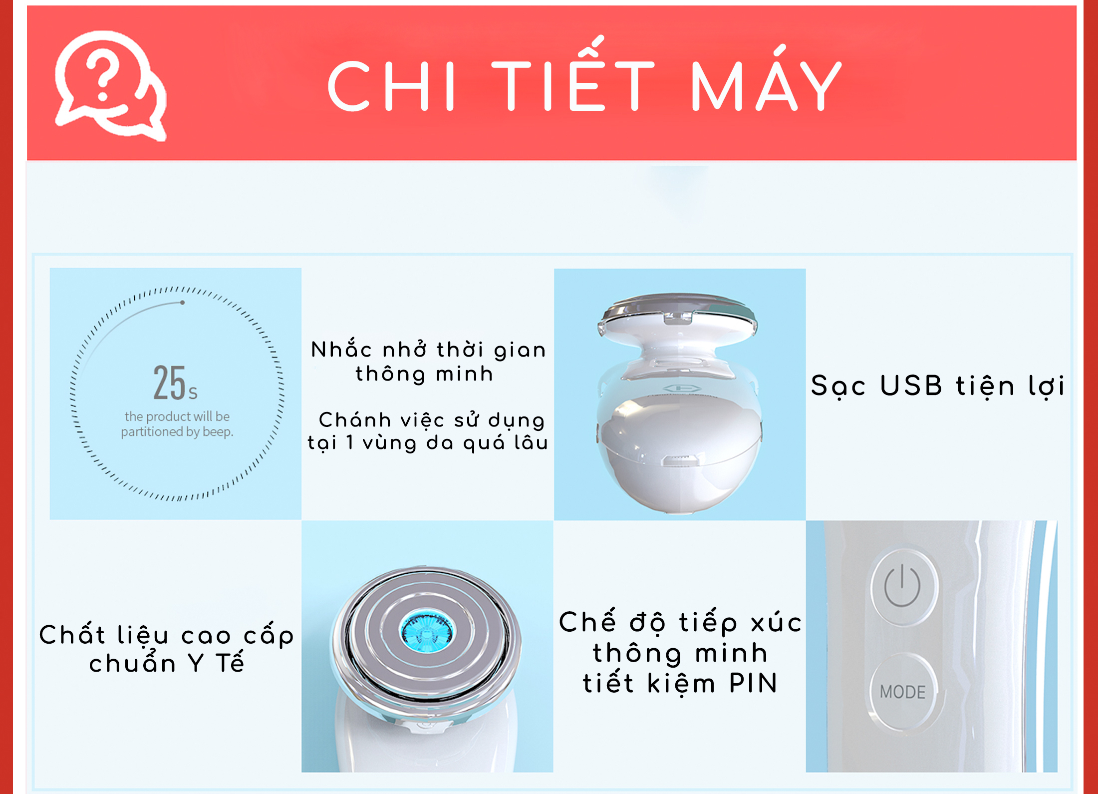 Máy Loại bỏ bụi bẩn,cặn trang điểm an toàn, Da sạch sâu căng tràn * Ưu điểm vượt trội: Sóng âm Ultrasonic giúp loại bỏ bụi bẩn và tẩy sạch tế bào trên da một