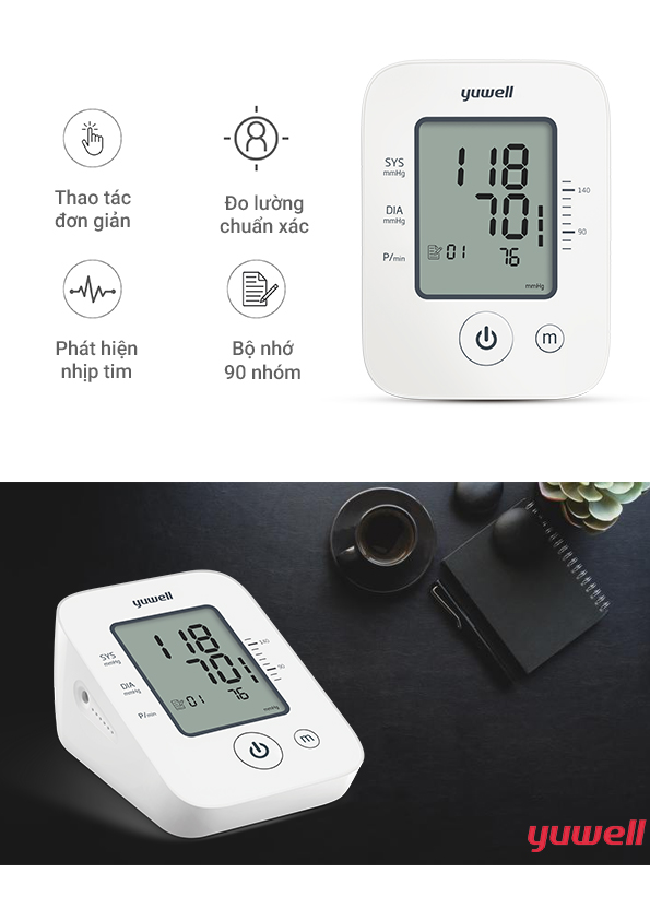 Mua tại TiktokĐo huyết áp là cách tự kiểm soát huyết áp của bản thân, đặc biệt là đối với những người có tiền sử bệnh huyết áp, người già có nguy cơ mắc bệnh tăng huyết áp. Vì vậy, việc đo huyết áp tại nhà có thể góp phần kiểm soát sự tăng/giảm huyết áp bất ngờ để phòng tránh các nguy cơ tai biến do huyết áp gây ra như tai biến mạch máu não, đột quỵ bằng việc điều chỉnh chế độ ăn uống, sinh hoạt cho hợp lý. Máy đo huyết áp điện tử bắp tay Yuwell YE660D: