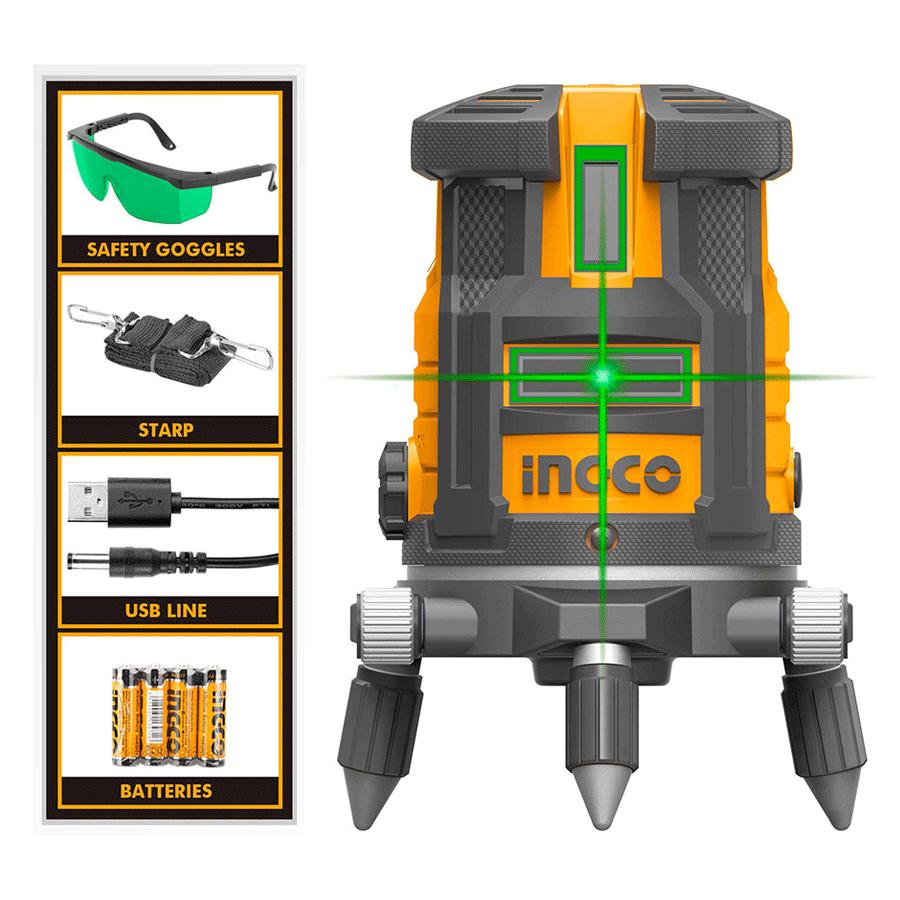Máy Cân Bằng Laser 5 Tia Xanh ABG Kingpro, Máy Cân Mực Laser Chất Lượng Cao, Máy Bắn Cốt Thiết kế kiểu dáng truyền thống giúp thao tác tiện lợi Chạy bằng pin 3*1.5VLR6 (AA)