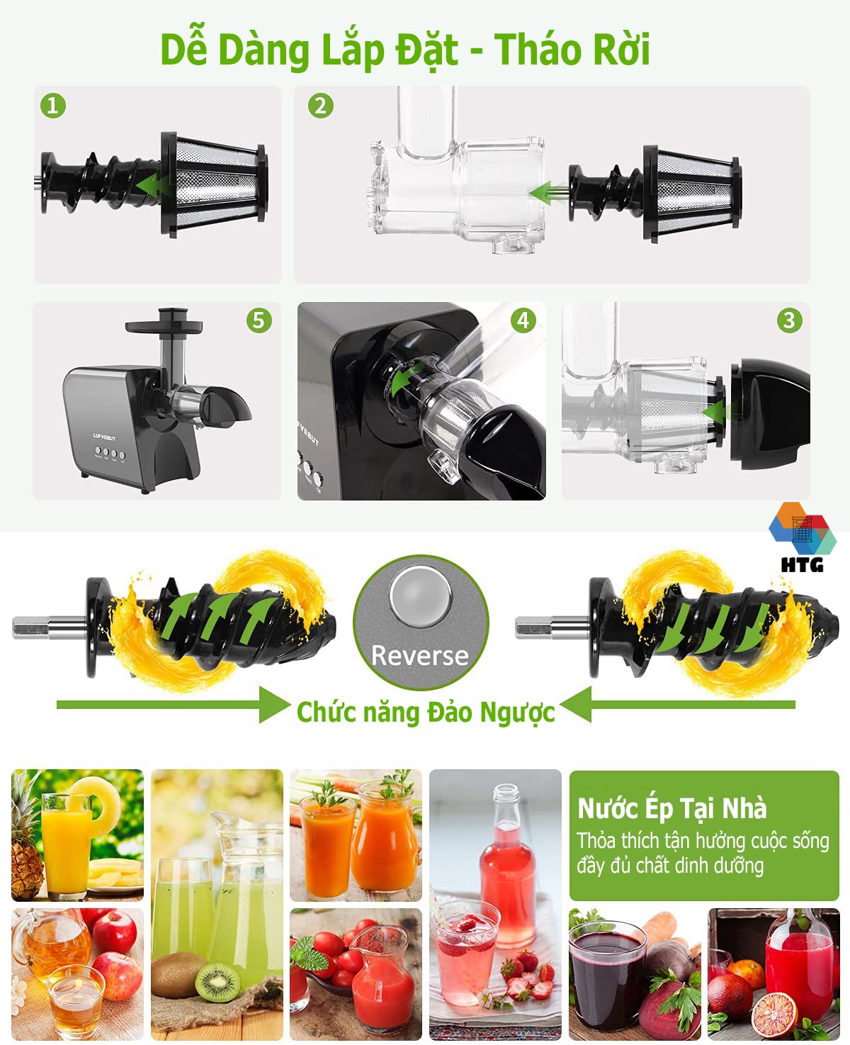 Máy ép chậm ngang LUFVEBUT hoàn toàn xứng đáng để chiếm một góc nhỏ trong gian bếp Việt, giúp cho cuộc sống của mỗi thành viên luôn đảm bảo đầy đủ chất dinh dưỡng xanh và sống healthy.