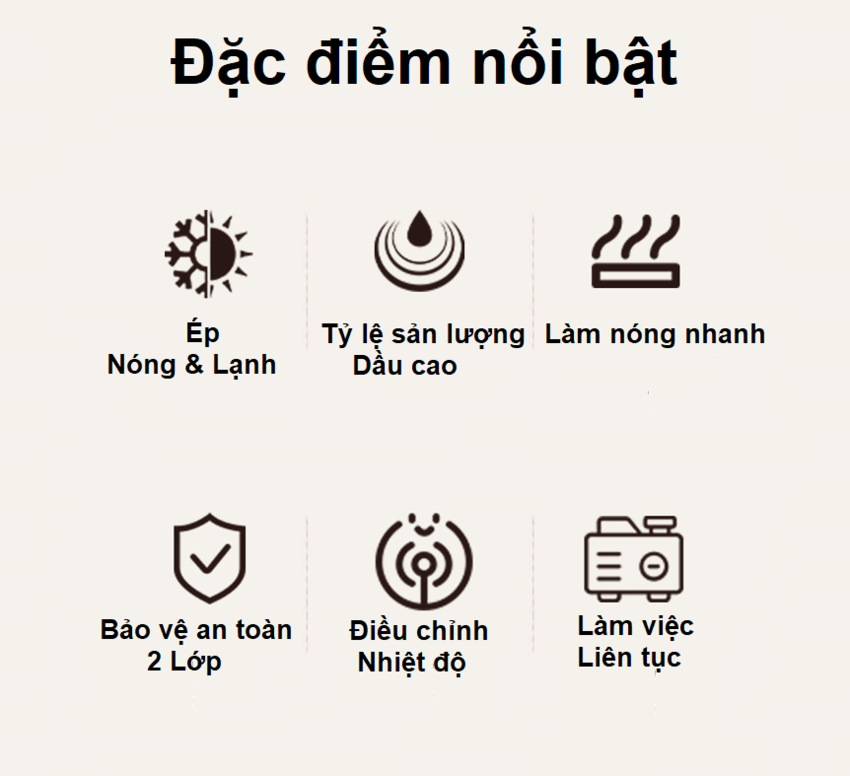 Ưu điểm nổi bật của máy ép dầu thực vật: - Sản phẩm sử dụng động cơ không chổi than, tăng độ bền gấp 3 lần so với các loại thường khác có dùng chổi