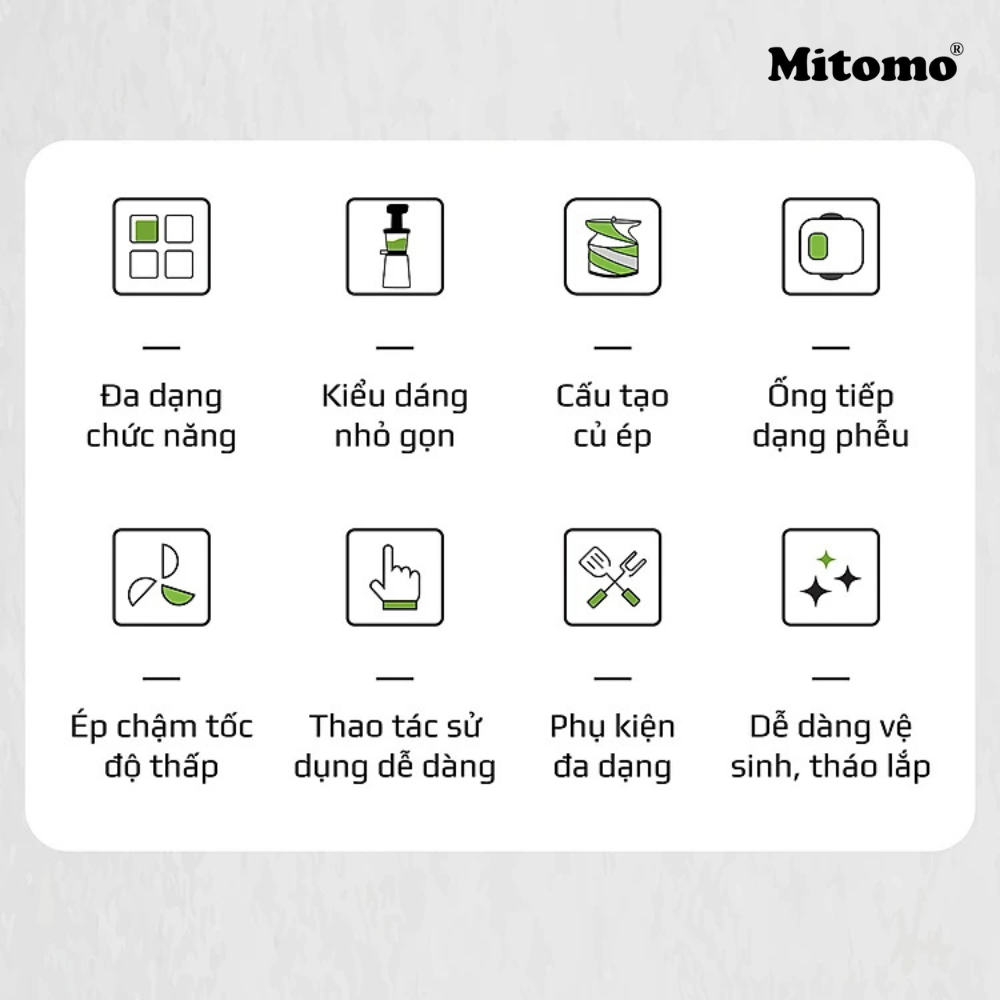 ✨Máy ép trái cây,hoa quả Mitomo- Giữ Nguyên Dinh Dưỡng, Động Cơ Êm, Dễ Vệ Sinh hãng chính hãng