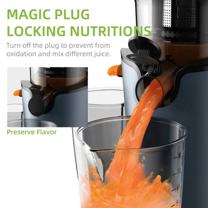 Ép kiệt hơn, giàu Vitamin và nhiều hương vị hơn! Đường kính khoang ép lớn lên đến 130mm, giúp ép nguyên quả dễ dàng mà không cần cắt nhỏ. Tốc độ quay chậm chỉ 40