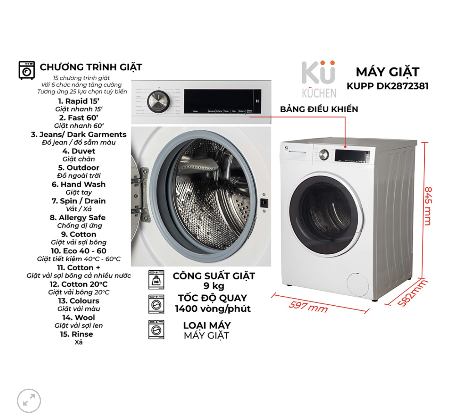 HIỂU RÕ CHỨC NĂNG - ƯU ĐIỂM VƯỢT TRỘI CỦA MÁY GIẶT KUCHEN KUPP DK2872381 09/07/2023