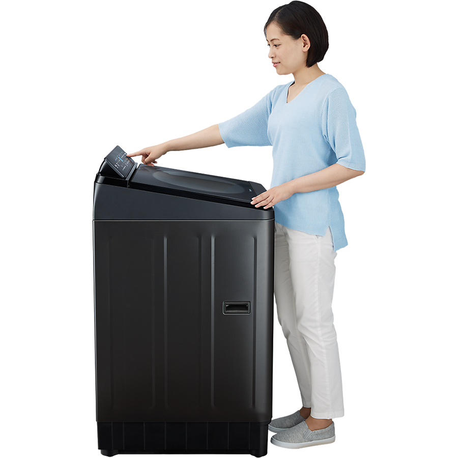 - Bảo vệ lồng giặt - Vệ sinh lồng giặt tự động Đánh tan vết bẩn & diệt khuẩn tối đa Tiết kiệm thời gian xử lý trước và giặt tay một cách dễ dàng, bất kể loại vết bẩn cứng đầu hay vị trí của vết bẩn khó giặt đến đâu. StainMaster+ dễ dàng đánh tan nhiều loại vết bẩn và loại bỏ vi khuẩn không thể nhìn thấy trên vải ở nhiệt độ nước lý tưởng với hiệu quả vò giặt xuất sắc. Chủ động vò giặt với xoáy nước siêu mạnh Được trang bị công nghệ TD Inverter, mâm giặt tạo sóng Active Wave Pulsator với thiết kế 8 cánh tạo ra luồng nước thẳng đứng mạnh mẽ để giặt bằng tác động chà giặt. Quần áo được di chuyển liên tục theo chuyển động chà giặt, giúp loại bỏ các vết bẩn cứng đầu một cách hiệu quả. Bọt siêu mịn đánh bay vết bẩn dễ dàng Hệ thống ActiveFoam tạo bọt siêu mịn, đậm đặc len lỏi sâu vào sợi vải để loại bỏ hoàn toàn bụi bẩn và kết quả là giúp vải sạch hơn. Giặt giũ hàng ngày trở nên đơn giản hơn Ngay cả việc giặt giũ với mẻ giặt lớn cũng trở nên thoải mái, khiến cho việc giặt giũ hàng ngày vô cùng dễ dàng. Thế hệ máy giặt Panasonic mới được thiết kế mới nắp mở rộng tối đa giúp thuận tiện cho đồ giặt của gia đình vào/lấy đồ giặt ra khỏi máy giặt. Thiết kế tối giản, hiện đại & sang trọng Bảng điều khiển có thiết kế đơn giản và thanh lịch cùng với nắp kính phẳng tràn viền, mang đến một vẻ ngoài hiện đại, mới mẻ.