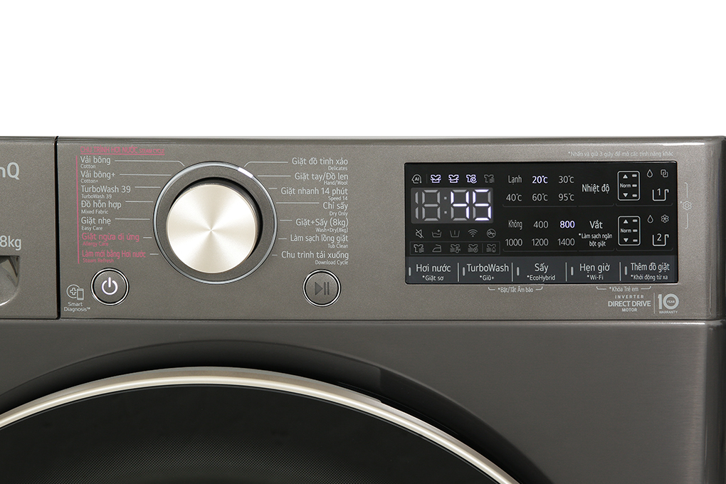- Động cơ: Máy giặt thuộc dòng động cơ truyền động trực tiếp, vận hành êm, tuổi thọ cao. Kết hợp với công nghệ Inverter giúp máy giặt LG hoạt động tối ưu, tiết kiệm điện hiệu quả.