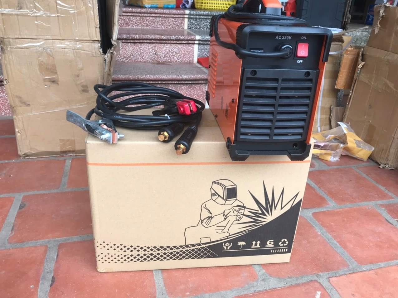 THÔNG TIN SẢN PHẨM 1pha-230V. 6,9KVA Dòng hàn ra 20-160A Kìm hàn với 1,5M cáp 16mm² Hàn que 3,2 liên tục Kẹp mass với 1,5M cáp 16mm² Hàn que 4,0 đính Trọng lượng 5,5kg Phụ