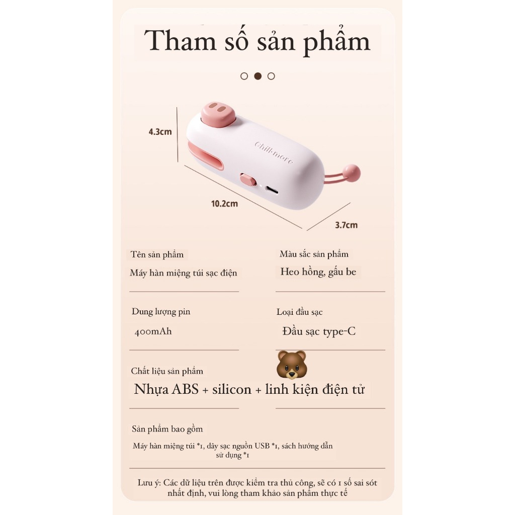 không kén túi không cần chờ làm nóng Tự động hàn và ngắt theo thiết lập thời gian Thân vỏ hợp kim nhôm (bền và tản nhiệt tốt hơn) Bảo hành 12 tháng Thông số