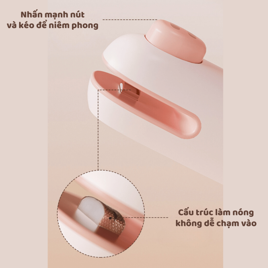 Máy Hàn Miệng Túi Cầm Tay Cute, Máy Ép Miệng Túi Đồ Ăn Vặt Sạc Pin Tích Hợp Nam Châm Kèm Đầu Cắt Tiện Dụng - Hàng Chính Hãng MINIIN