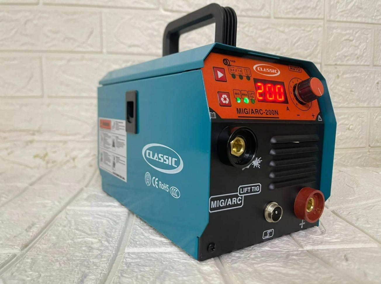 -Máy hàn Classic TIG/ARC-200CL là sự kết hợp hoàn hảo giữa máy hàn TIG và máy hàn que. Thiết kế này giúp tiết kiệm chi phí, tiết kiệm diện tích đặt máy, làm được nhiều