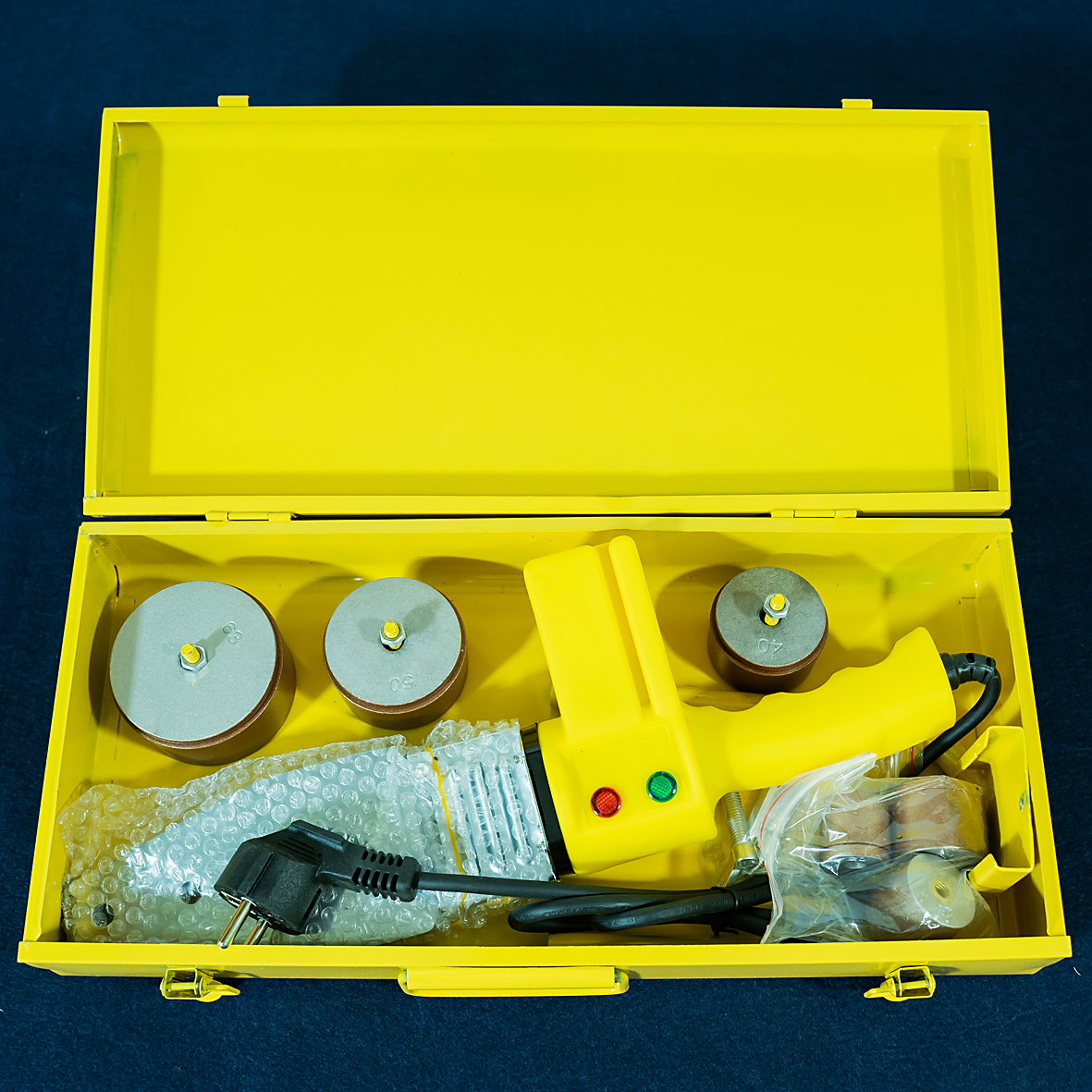Máy hàn nhiệt chuyên dùng hàn ống PP-R, đầu hàn có kích cỡ thông dụng 20mm & 25 mm & 32mm & 40mm & 50mm & 63mm