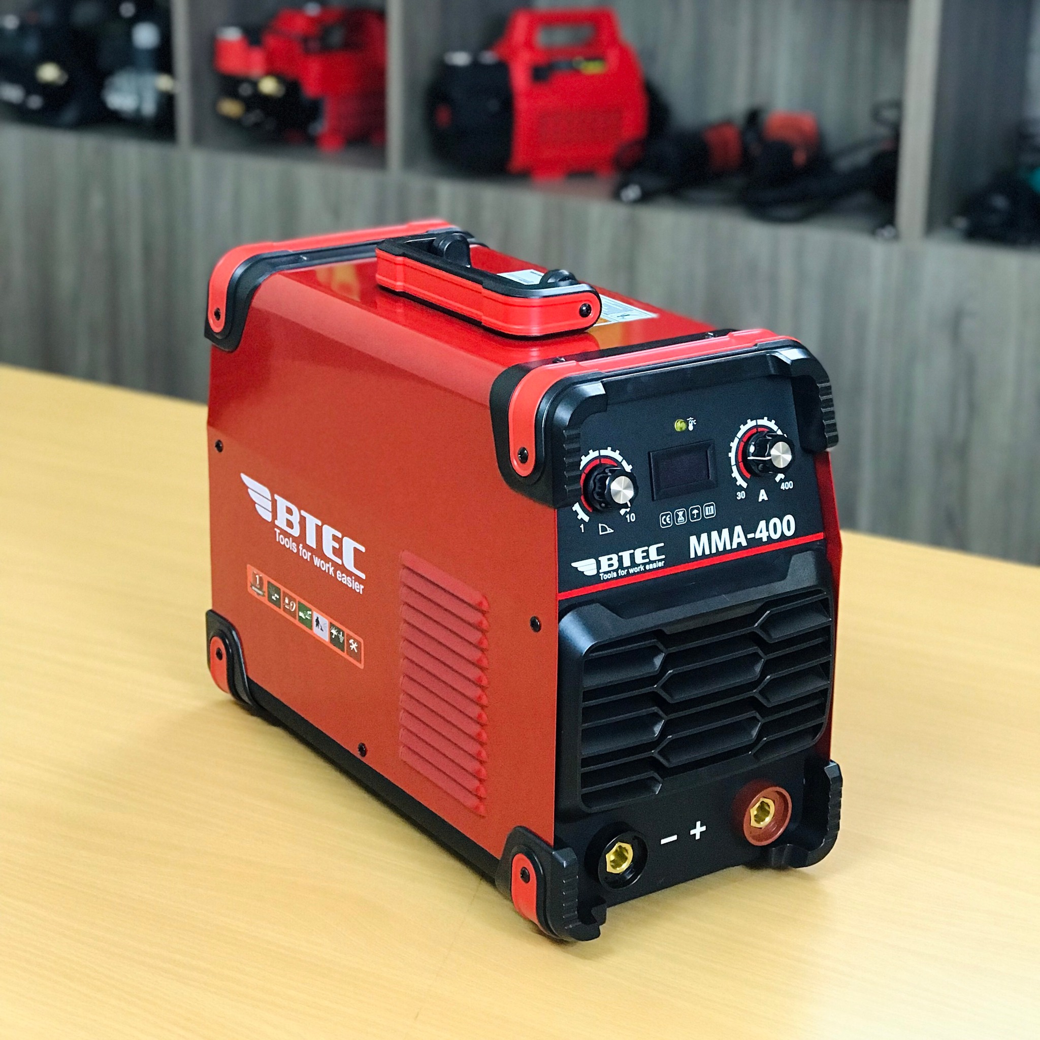 Máy hàn que btec mma-400 là dòng máy hàn điện tử với trọng lượng 15.36 kg