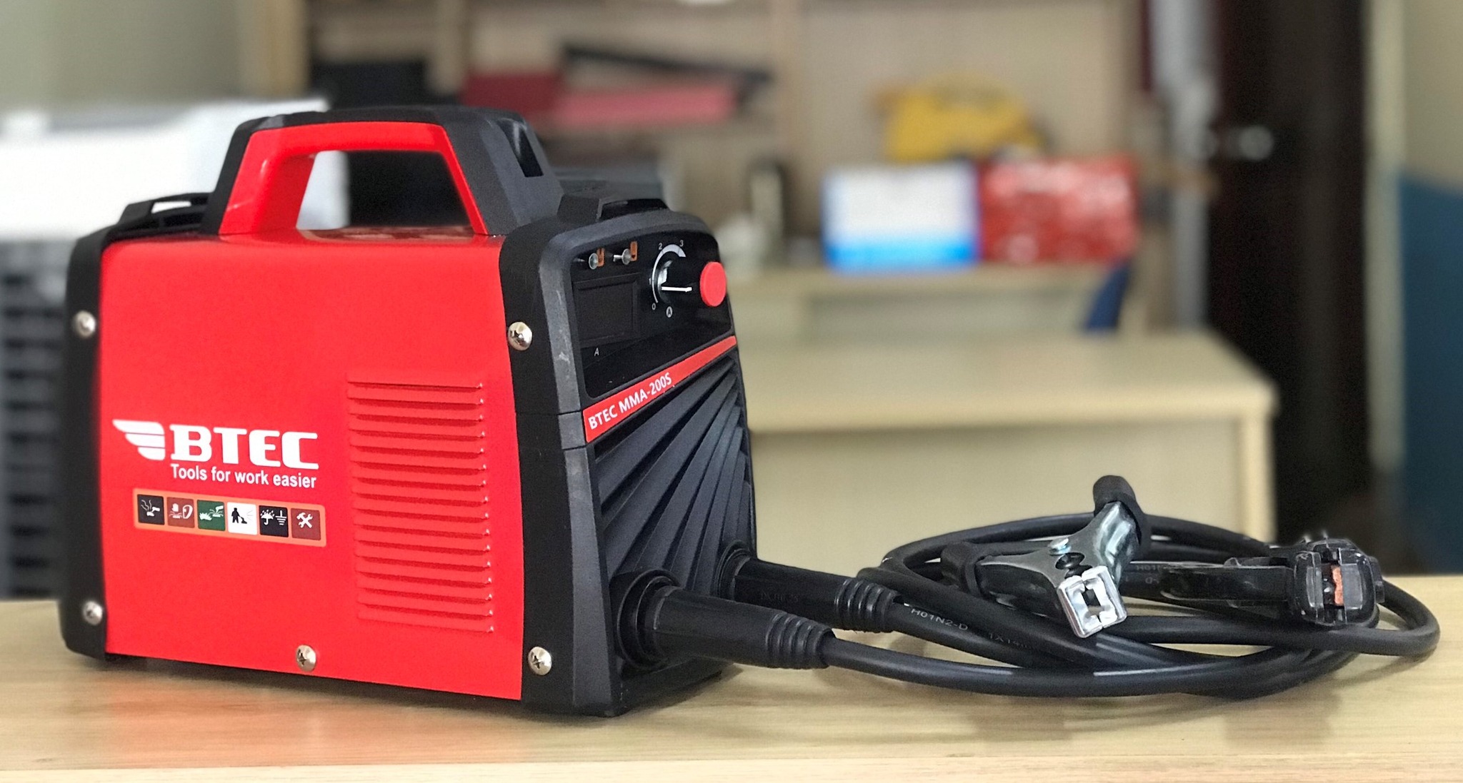 Máy hàn BTEC MMA 250A làm việc hiệu quả với que hàn từ 3.2mm - 4mm Máy hàn BTEC MMA 250A có cường độ dòng hàn tùy chỉnh tới 250A nên thích hợp sử dụng