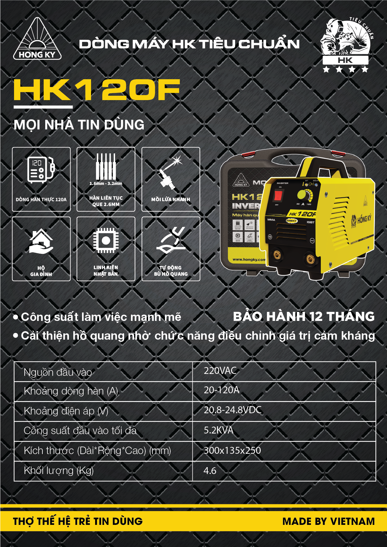 MÁY HÀN QUE MMA INVERTER HỒNG KÝ HK120F - CÔNG NGHÊ HIỆN ĐẠI 2022