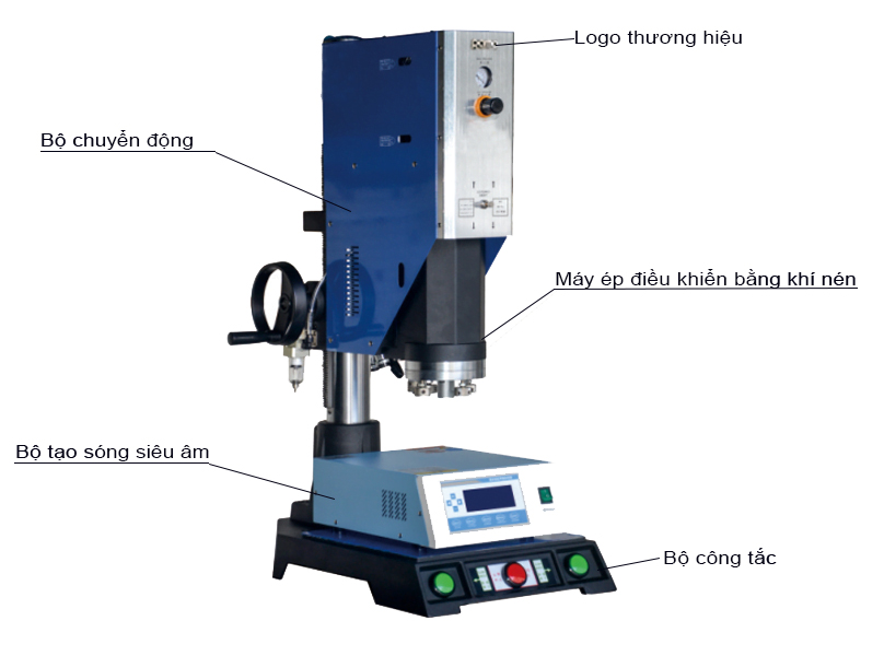Bước 3: Nhấn đồng thời nút Start và khuôn hàn siêu âm đi từ trên xuống dưới, xoay bánh xe để đảm bảo khuôn trên của máy hàn vừa chạm đến đồ vật cần hàn sau đó vặn khóa lại.