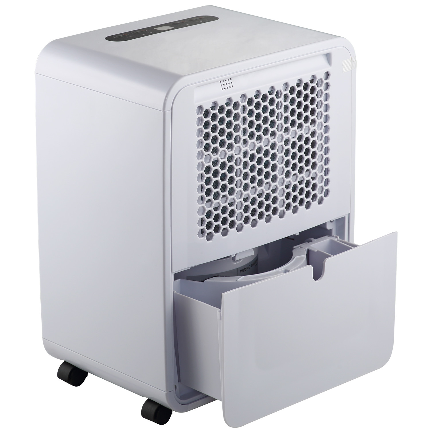 Công suất hút ẩm lên tới 20 lít mỗi ngày (ở 30° C và 80 %) Hiển thị độ ẩm kỹ thuật số, có thể điều chỉnh đến độ ẩm từ 30–80 % hoặc hoạt