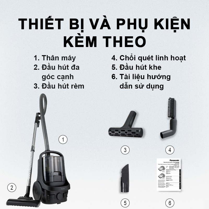 MÁY HÚT BỤI Panasonic lực hút mạnh và trang bị đầu hút đệm giường, rèm cửa