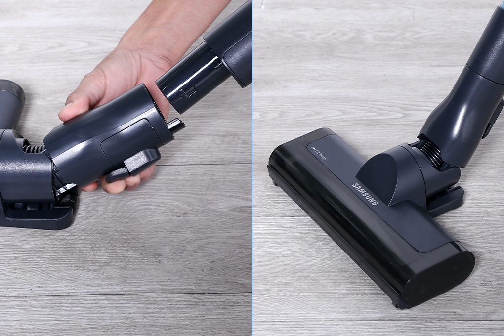 Thân máy hút bụi có khối lượng 2.3 kg, nhẹ hơn 21% so với máy hút bụi Samsung thông thường giúp giảm sức nặng lên cổ tay và thuận tiện di chuyển khắp mọi nơi trong nhà.