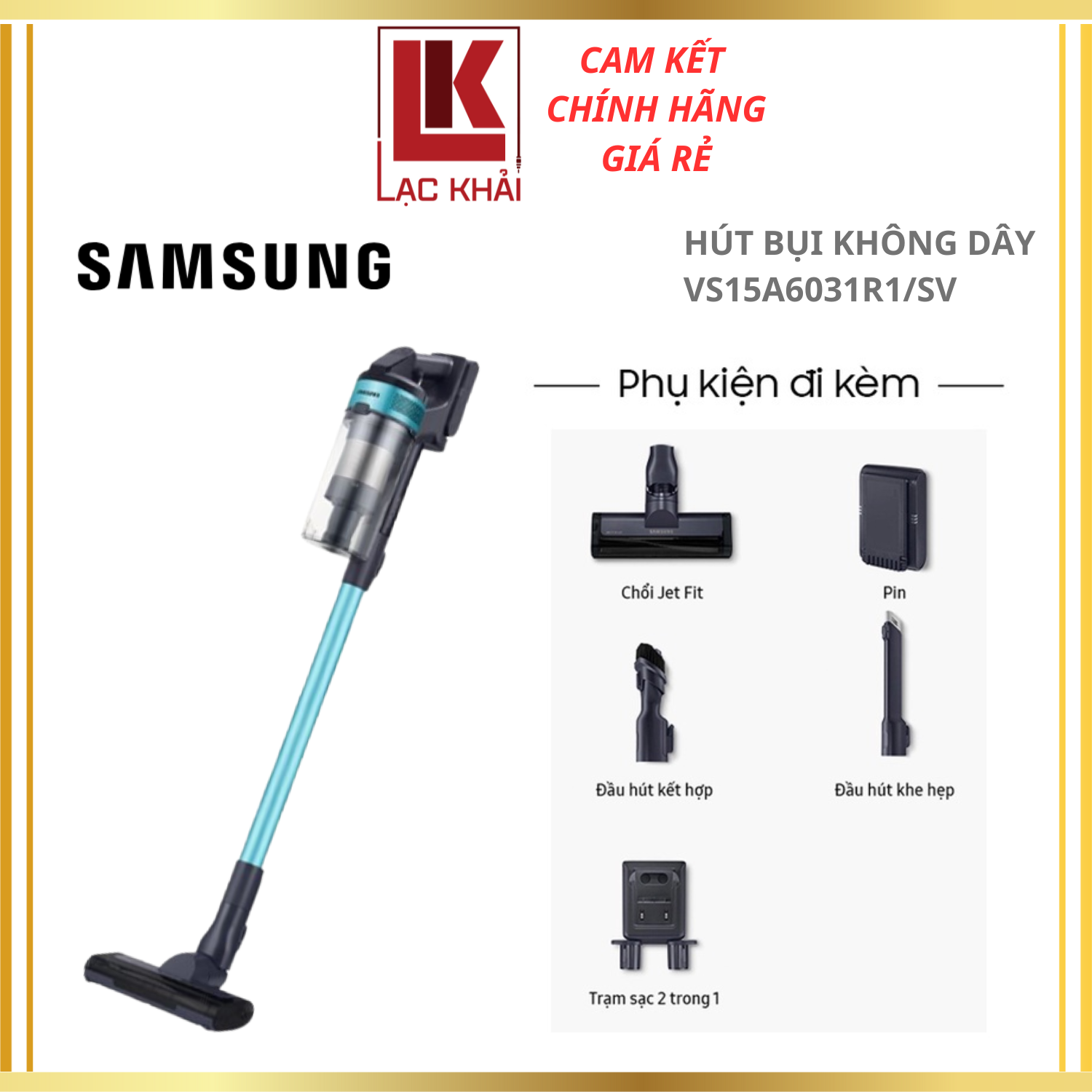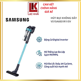 Máy hút bụi cầm tay Samsung VS15A6031R1/SV hiện đại, gọn nhẹ, sử dụng linh hoạt, đa năng, mang đến giải pháp vệ sinh hiệu quả cho mọi vị trí trong ngôi nhà.