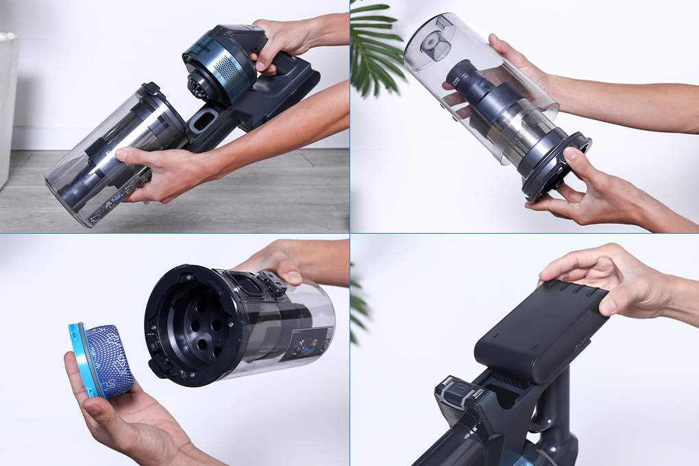 Khi hết pin, có thể tháo rời và thay pin dự phòng (bán rời) để tiếp tục chu trình hút đến 80 phút. Sản phẩm dùng bền bỉ, bảo toàn tới 70% hiệu suất ban đầu sau 500 chu trình hút.