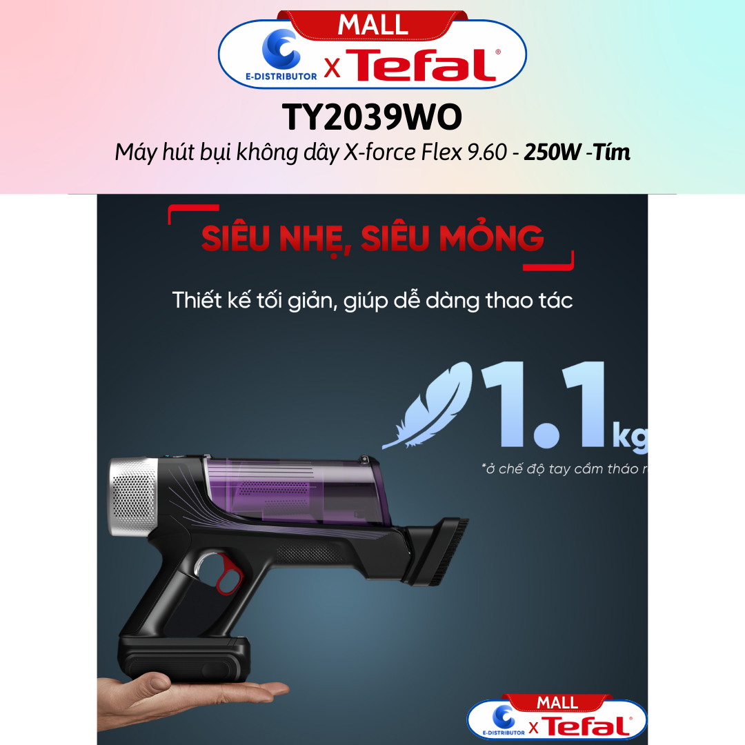✨Máy hút bụi không dây X-force Flex 9.60 TY2039WO - Tím - Hàng Chính Hãng - - Công suất: 250W - Đầu hút: 100AW - Thời lượng pin: 45 phút