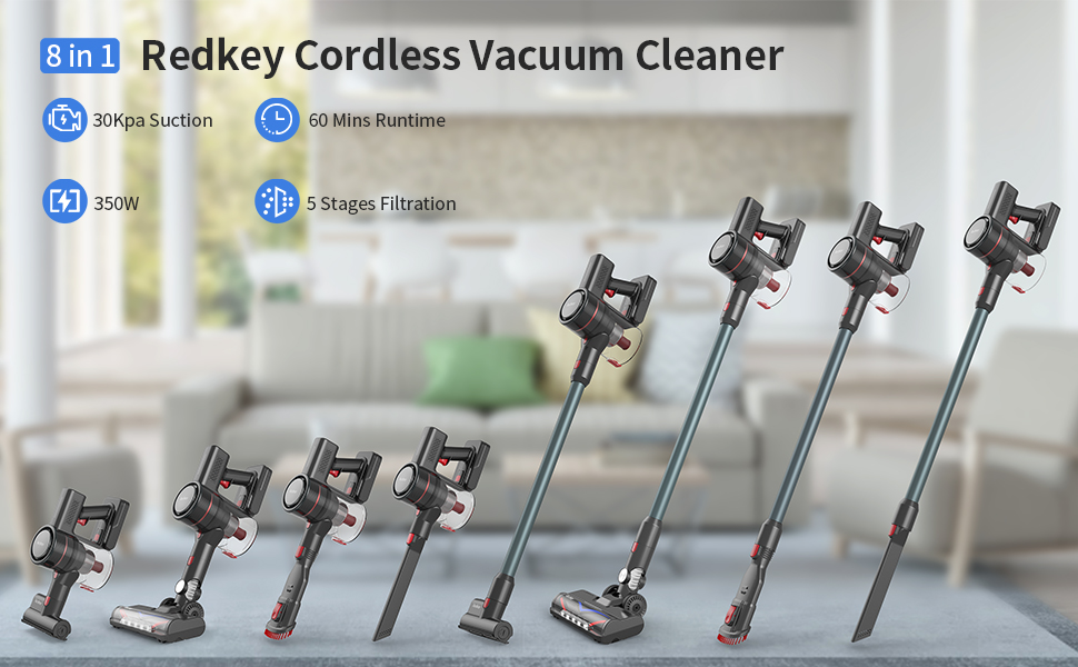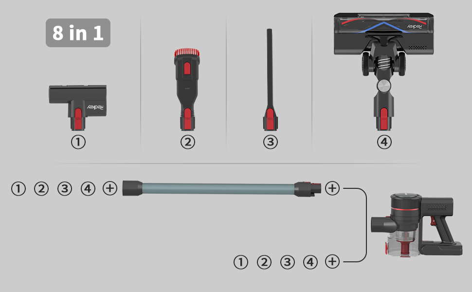 Để làm tăng trải nghiệm hút bụi, Redkey P9 được hãng trang bị nhiều đầu hút và thanh nối giúp người dùng có thể dọn dẹp ở nhiều khu vực khác nhau. Các đầu hút của P9 đều nhỏ gọn, linh hoạt và giúp bạn dễ dàng tiếp cận những chỗ chật hẹp dưới gầm giường hoặc ghế sofa thấp.