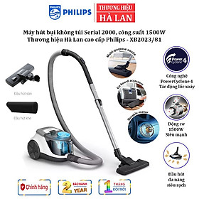 - Máy hút bụi không túi Philips XB2023/81 thuộc dòng 2000 là máy hút bụi có sức hút mạnh. Nhờ có công nghệ PowerCyclone 4 và đầu hút đa năng giúp vệ sinh sạch sẽ mọi loại sàn Động cơ bền bỉ 1500W tạo ra sức hút mạnh