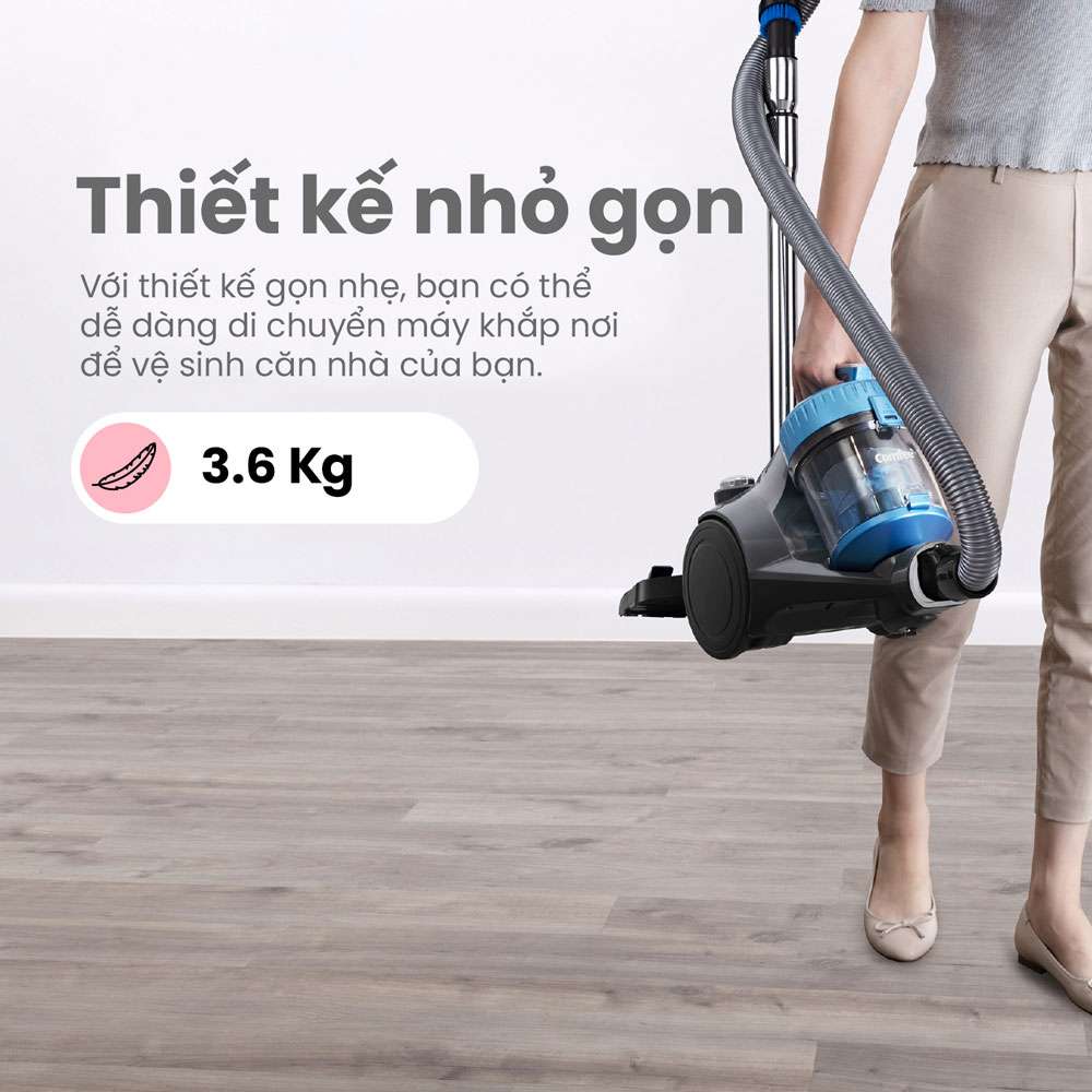Máy Hút Bụi Toshiba COMFEE CVC-CBLA1 - Hàng Nhập Khẩu Của Toshiba với thiết kế bánh xe lăn và diện tích nhỏ gọn, cùng với cân nặng 3.6kg tạo nên độ linh động cao. Giúp bạn dễ dàng di chuyển và dọn dẹp các không gian khác nhau.