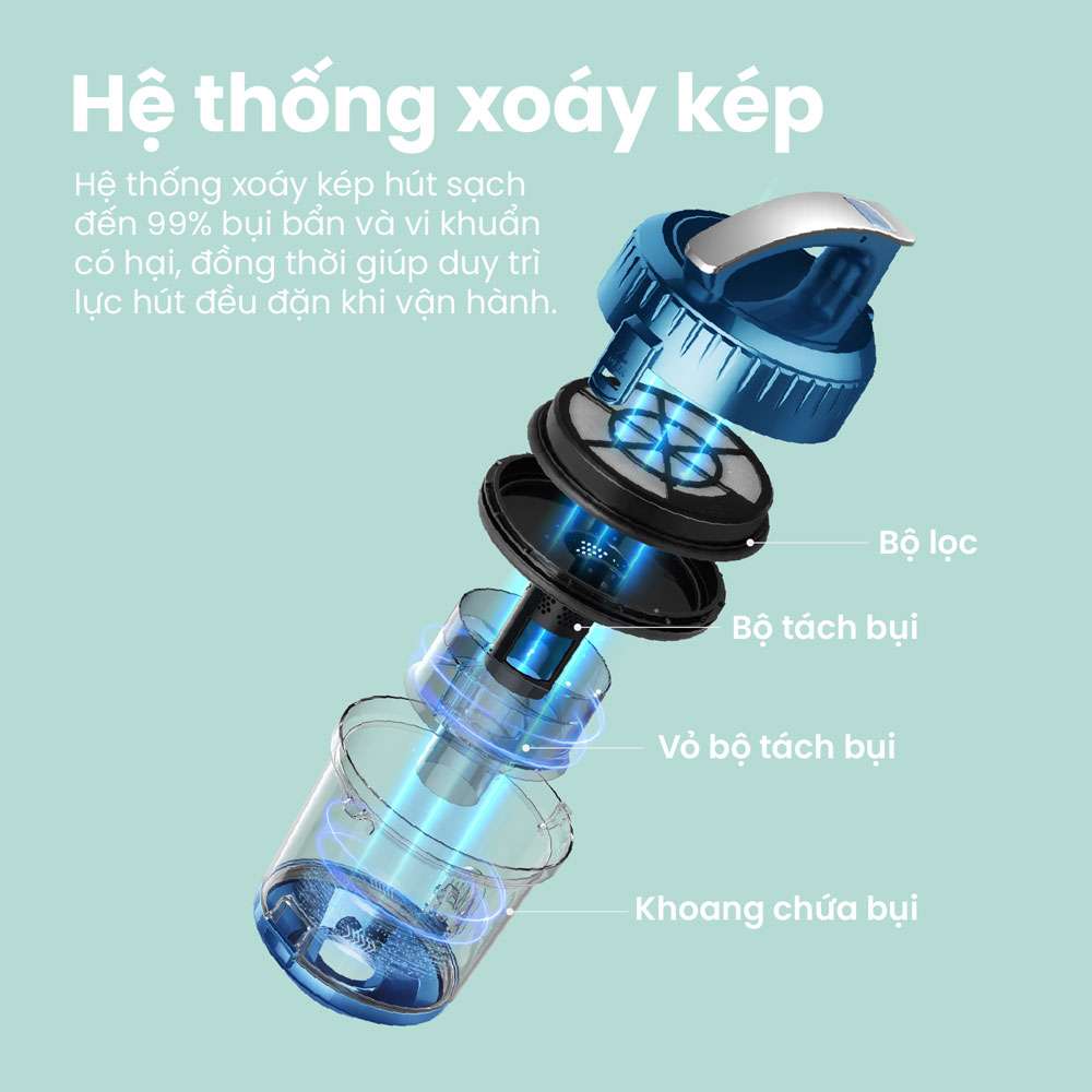Hệ thống xoáy kép cho lực hút mạnh mẽ