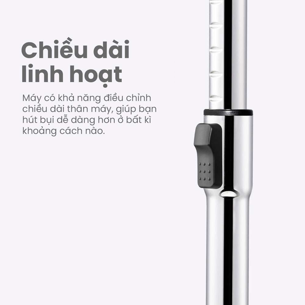 Máy Hút Bụi Toshiba COMFEE CVC-CBLA1 - Hàng Nhập Khẩu Của Toshiba được cải tiến vô cùng thân thiện với người dùng. Chỉ với một nút bấm bạn đã có thể thay đổi chiều dài của tay cầm để dọn dẹp tại các không gian với các khoảng cách khác nhau.