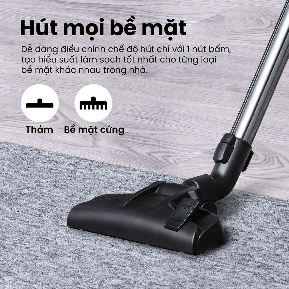 Máy Hút Bụi Toshiba COMFEE CVC-CBLA1 - Hàng Nhập Khẩu Của Toshiba hoạt động ổn định trên nhiều bề mặt khác nhau. Cùng với các đầu hút thay thế nhanh chóng làm sạch sàn gạch, sàn gỗ, thảm, sofa, tủ nhựa, đồ nội thất, rèm cửa,...