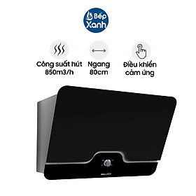 Tính năng cơ bản Máy hút khói gắn áp tường Chất liệu: Inox, kính đen Điều khiển cảm ứng, 5 tốc độ Thông số kỹ thuật: Công suất hút 850 m3/h Độ ồn: <63dB Công
