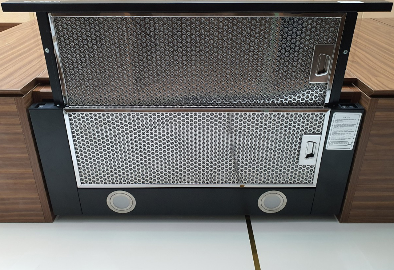 TÍNH NĂNG SẢN PHẨM Máy hút mùi âm tủ Đèn Led siêu sáng Điều khiển cơ rút trượt 2 cấp độ Máy kéo ra bật, đóng vào tắt Lưới lọc mỡ bằng nhôm 5 lớp