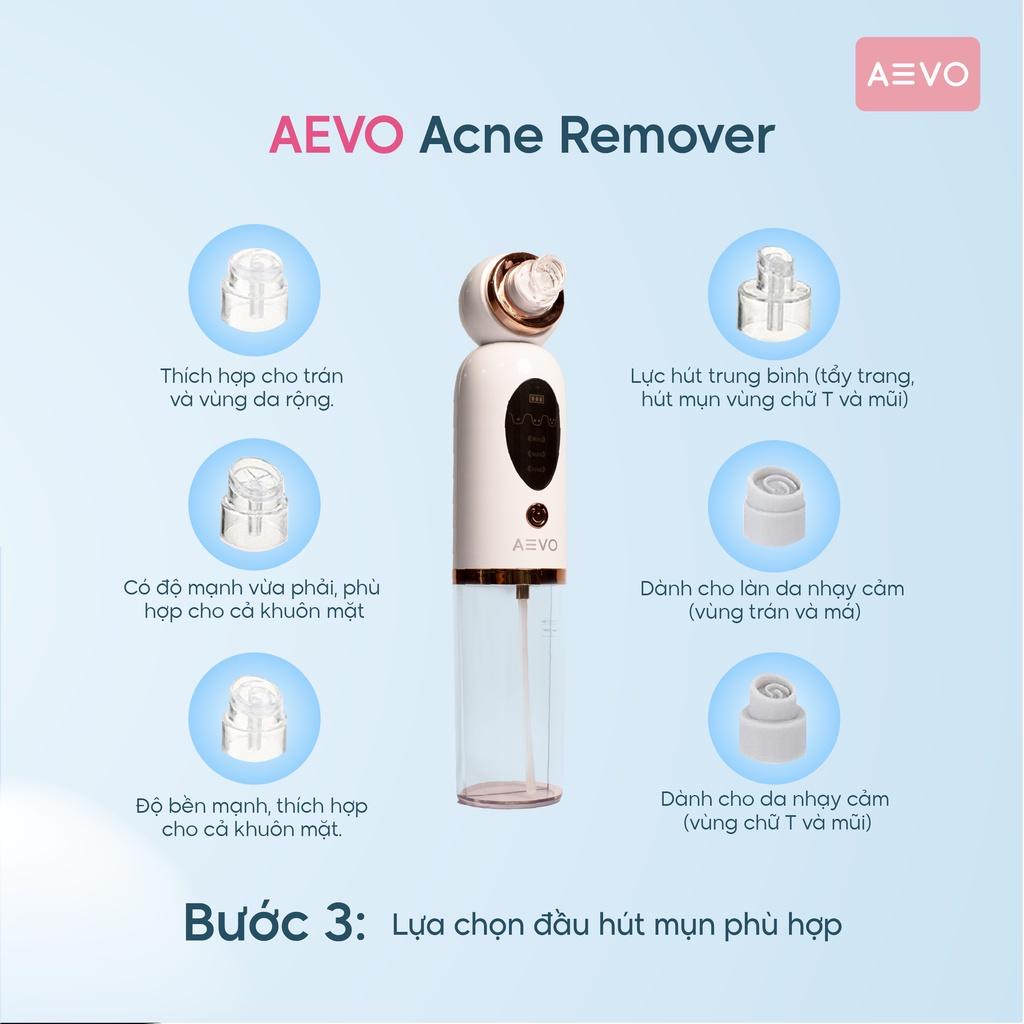 ĐẶC ĐIỂM NỔI BẬT Máy hút mụn Aevo Acne mover có đến 6 đầu hút mụn thay thế thay vì 4-5 đầu thay như các máy thông thường khác giúp thuận tiện cho việc sử