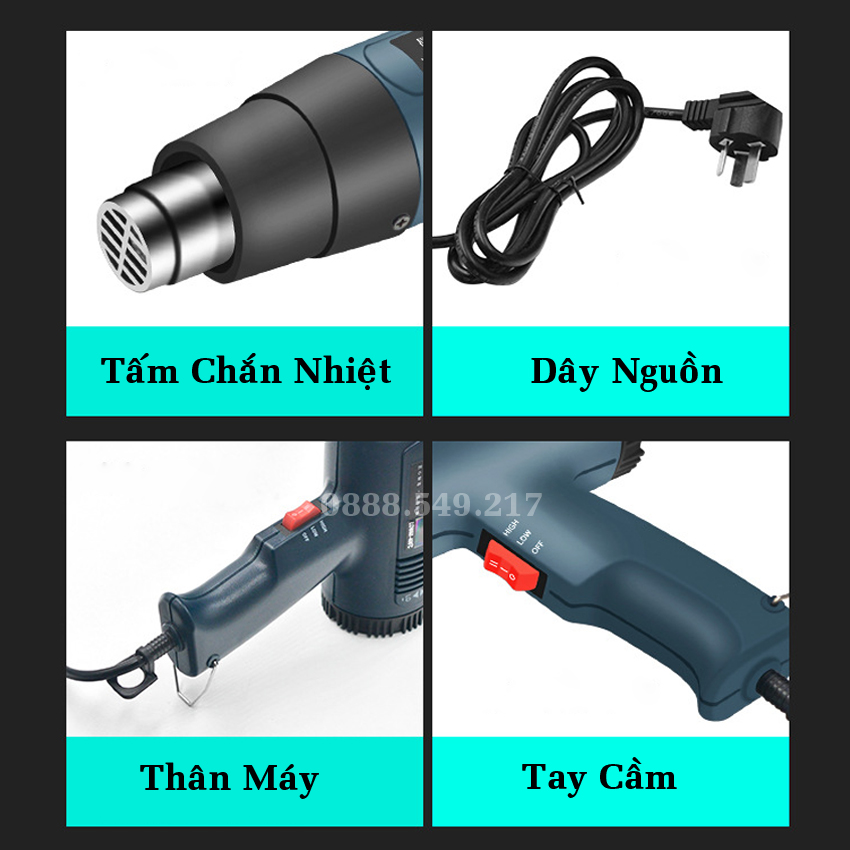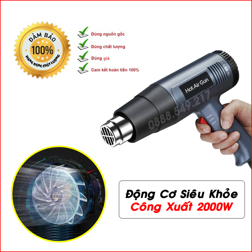 UY TÍN - CHẤT LƯỢNG - GIÁ RẺ ĐẢM BẢO CHẤT LƯỢNG TỐT NHẤT ĐẾN TAY NGƯỜI DÙNG Máy khò hơi nóng 2000w khò nhiệt, bọc màng co giỏ quà tết, dán decal, đóng seal hộp có điều chỉnh nhiệt Sản phẩm được sản xuất theo công nghệ hiện đại, có độ chuẩn xác cao, đảm bảo mang đến hiệu quả công việc tối ưu và thời gian sử dụng lâu dài Được sử dụng nhiều trong gia đình hay xưởng làm việc, mọi công việc sẽ được hoàn thành một cách nhanh chóng và đạt hiệu quả cao. Máy thổi hơi nóng là loại máy rất hữu ích trong công việc như hoà tan vật liệu, kết dính chúng lại với nhau hay loại bỏ những vật liệu khi chúng không còn tác dụng nữa. Thông Số Kĩ Thuật