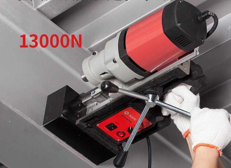 Máy khoan từ 1200W Ken 6023N được trang bị đế từ với lực hút cực mạnh, làm cho máy được giữ(hút) chặt vào vật liệu, đảm bảo khi làm việc sẽ không bị rung hay đảo. Với lực hút mạnh, máy khoan từ có thể làm việc theo chiều dọc, chiều ngang hay chiều lộn ngược.