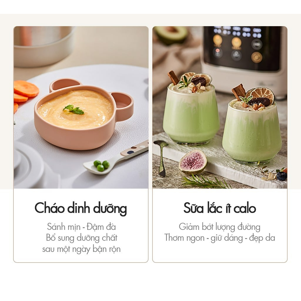Máy xay sữa hạt mini 1.5L Bear PBJ D08T1 đa năng, 1200W, 10 chế độ xay sinh tố, nấu cháo