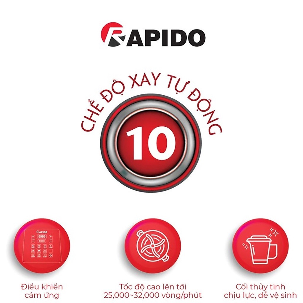 Máy làm sữa hạt Rapido model RHB1800D được sản xuất bằng công nghệ hiện đại CHLB Đức, sử dụng các vật liệu an toàn cho sức khỏe. Thiết kế tinh tế, màu sắc trang nhã, máy làm sữa hạt Rapido chinh phục khách hàng không chỉ bởi sự tiện dụng mà còn là điểm nhấn cho không gian bếp trong gia đình hiện đại.
