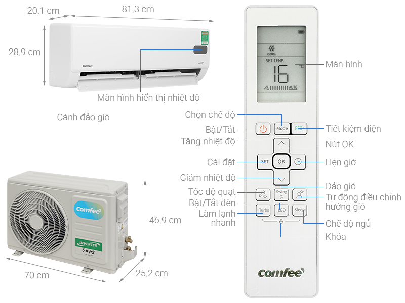 Máy Lạnh Comfee Inverter 1.5 Hp CFS-13VCB1 - Msp:164678 - Điện Máy Chợ Lớn Cà Mau - Máy Lạnh Comfee