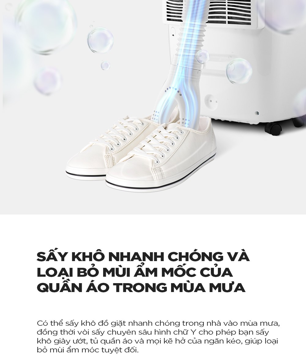 ĐẶC ĐIỂM NỔI BẬT - Phù hợp diện tích 30m2 – 40m2 - 3 chế độ – Tích hợp sấy quần áo - Cảm biến thông minh – Hút ẩm tự động - Tự động