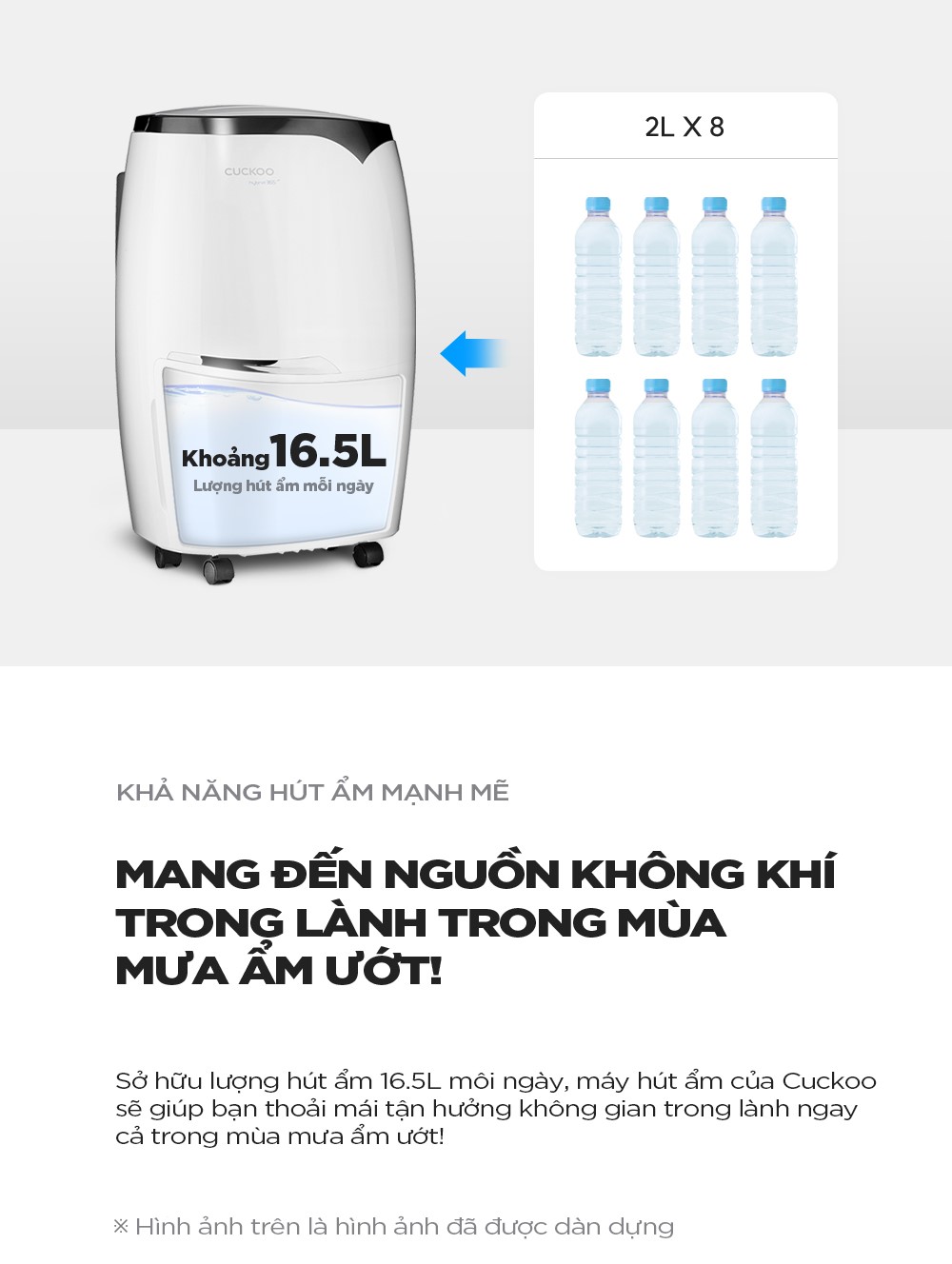 Thông tin chi tiết Tính năng nổi bật: + Kiểu dáng gọn, đẹp. + Tiết kiệm điện, chạy êm -> phù hợp với phòng ngủ, khách. +  Có khả năng hút 16 - 20L/ngày +
