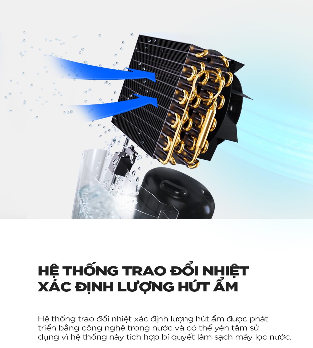 Công suất hút ẩm 50 lít / 24 giờ Thích hợp cho phòng lên đến 250 m³ Chế độ hút ẩm thông minh (SMD-Smart Dehumidification Mode) - kiểm soát độ ẩm theo tỷ lệ giữa