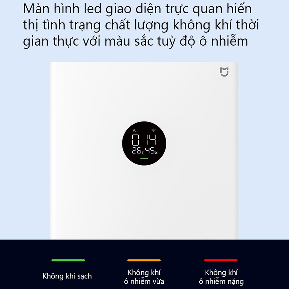 Máy lọc không khí Xiaomi 4 Lite Thông số kỹ thuật: Thương hiệu Xiaomi  Model AC-M17-SC PM CADR 120m3/h Điện áp định mức 100 -240V Độ ồn 35.8dB Công suất định mức 32W Kích thước sản phẩm 240 x 240 x 533,5mm Khối lượng tịnh 4.8Kg Diện tích áp dụng 26 - 45m2 Máy lọc không khí thông minh Mijia Air Purifier 4 Lite, một lựa chọn kinh tế cho những ai đang tìm kiếm một thiết bị hỗ trợ làm sạch không khí trong nhà. Thuộc thế hệ thứ 4, máy lọc sở hữu hàng loạt những công nghệ mới, đi kèm với đó là một mức giá rẻ, dễ dàng tiếp cận với tất cả mọi người. Lý do khiến bạn nên chọn máy lọc không khí thông minh Mijia Air Purifier 4 Lite Máy lọc không khí thông minh Mijia Air Purifier 4 Lite là sản phẩm nằm trong series 4 của dòng máy lọc không khí đến từ Xiaomi. Máy sở hữu nét thiết kế mới, vẫn nhỏ gọn và đơn giản. Trang bị bộ lọc hiện đại có thể đạt tốc độ lọc đến 380m3/h cùng với hiệu quả lọc bụi lên đến 99.99% mang đến cho gia đình bạn một bầu không khí tinh khiết.  Tốc độ lọc cao, hỗ trợ diện tích đến 45m2  Máy lọc không khí thông minh Mijia Air Purifier 4 Lite cung cấp PM CADR lên đến 380m3/h, có thể cung cấp đến 6330L không khí sạch mỗi phút, hiệu quả thanh lọc tương đối nhanh, đặc biệt là hỗ trợ diện tích 26- 45m2 Máy có 4 lớp lọc, loại bỏ nhanh chóng các hạt bụi, tóc, các hạt mịn, lông thú cưng,ộ lọc cho hiệu quả lên đến 99.99% các hạt PM2.5 có đường kính lớn hơn hoặc bằng 0.3μm và các mầm bệnh như vi khuẩn, virus, các chất gây dị ứng. Máy còn hấp thụ được các chất độc như formaldehyde, hợp chất hữu cơ dễ bay hơi và các khí độc hại trong không khí, Mijia Air Purifier 4 Lite còn dược hãng giới thiệu là có thể loại bỏ được cả mùi hôi.  Cảm biến siêu nhạy, màn hình LED hiển thị thông tin Máy lọc không khí Mijia Air Purifier 4 Lite được trang bị cảm biến laser có độ chính rất xác cao, cung cấp kết quả dựa trên chất lượng không khí ở trong nhà ngay thời gian thực cực kỳ chính xác. Khi hệ thống dò được chất lượng không khí kém, nó sẽ hiện thanh màu đỏ, màu cam cho chất lượng bình thường và màu xanh lá cây là chất lượng không khí tốt nhất.  Dù máy lọc không khí luôn hoạt động với hiệu năng cao nhưng nó vẫn đảm bảo được sự êm ái cần thiết, tiếng ồn chỉ ở mức 35.8dB, siêu yên tĩnh. Không làm ảnh hưởng đến giấc ngủ và sinh hoạt của người dùng. Bạn cũng có thể cài đặt, tắt độ sáng màn hình buổi tối để không ảnh hưởng tới giấc ngủ. Thiết kế đẹp mắt, quản lý dễ dàng trên App Máy có thiết kế nhỏ gọn với kích thước 240 x 240 x 533,5mm và màu trắng chủ đạo, không có quá nhiều chi tiết càng làm tăng thêm phần sang trọng và có tính thẩm mỹ cao. Do vậy máy có thể đặt ở nhiều không gian khác nhau. Bên cạnh đó, máy được làm từ ABS vô cùng bền bỉ. Là một thiết bị trong hệ sinh thái thông minh của Xiaomi, chính vì vậy, Máy lọc không khí Mijia Air Purifier 4 Lite cũng được hỗ trợ kết nối qua App thông minh, điều khiển giọng nói. Sau khi kết nối app, bạn có thể điều khiển từ xa trên chiếc điện thoại thông minh của mình, bật/tắt, hẹn giờ, xem được chất lượng không khí, tuổi thọ của lõi lọc, ….