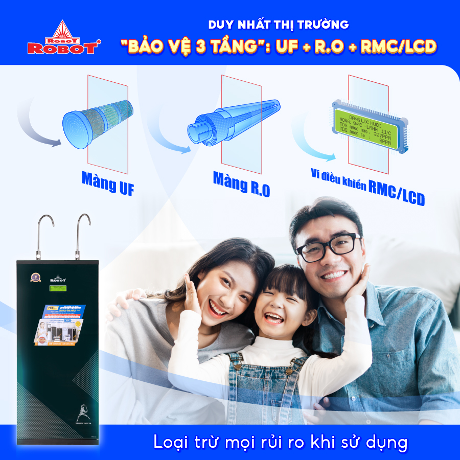 - Máy lọc nước “Bảo vệ 3 tầng” UF + RO - RMC/LCD duy nhất thị trường