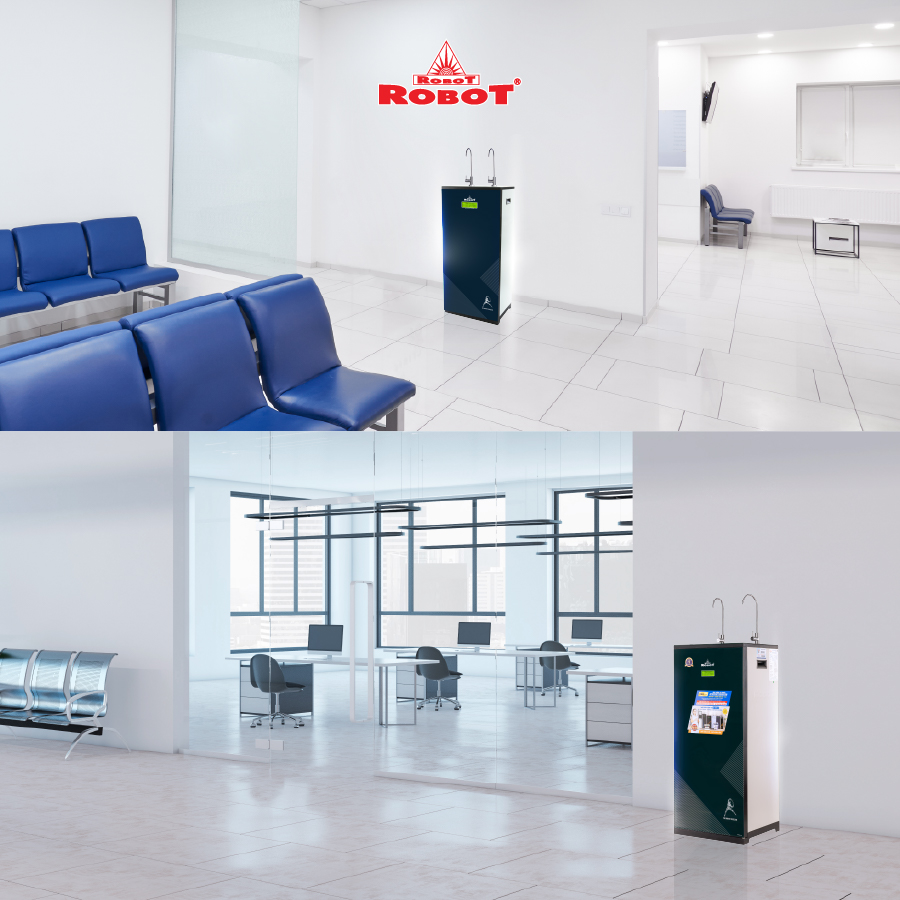 • Công suất lọc lớn lên đến 100 lít/h phù hợp với nơi có nhu cầu sử dụng lớn như nhà xưởng, xí nghiệp, văn phòng, nhà hàng, kinh doanh dịch vụ…   Máy lọc nước ROBOT Thế hệ mới có kiểu dáng hiện đại, tinh tế, phù hợp với nhiều không gian công cộng, nhu cầu công suất lớn